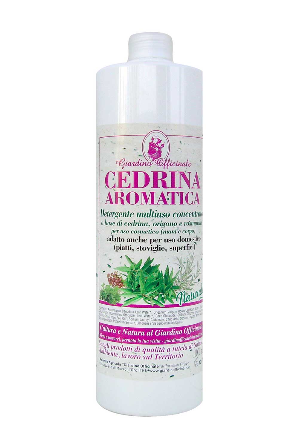 Il detergente multiuso Cedrina Aromatica, ottenuto da materie prime di piante officinali da coltivazione biologica, contiene la fragranza del profumo limonato di Lippia citriodora e l’azione antibatterica e antimicrobica, scientificamente riconosciuta, degli oli essenziali di altre eccellenti piante aromatiche come Rosmarino e soprattutto Origano (per il carvacrolo, suo componente principale, e timolo). Il detergente Cedrina Aromatica è concentrato: ne basta pochissimo e per questo dura molto più a lungo di un normale detergente.