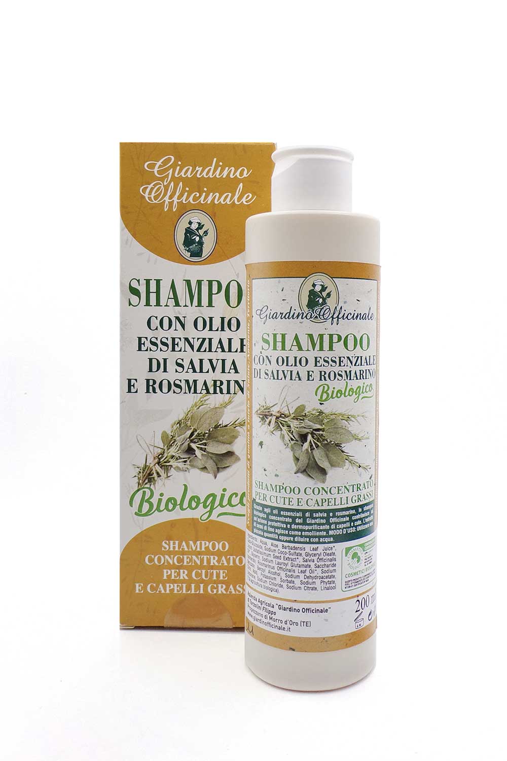 Detergente adatto a de- tergere cute e capelli grassi. I suoi componenti sono di derivazione naturale e ottenuti da coltivazioni biologiche. Grazie agli oli essenziali di salvia e rosmarino, lo Shampoo Salvia e Rosmarino del Giardino Officinale contribuisce ad un’azione protettiva e dermopurificante di capelli e cute. L’estratto di semi di lino agisce come emolliente. Lo Shampoo Salvia e Rosmarino è con- centrato: ne basta pochissimo, sia puro che diluito, per questo dura molto più a lungo di un normale shampoo.