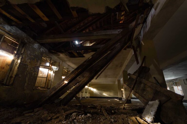 Ciò che si recepisce in questi spazi è l’intensità dei contrasti, una potente forza conflittuale degli opposti che ancora oggi pervade le macerie fatiscenti e abbandonate.